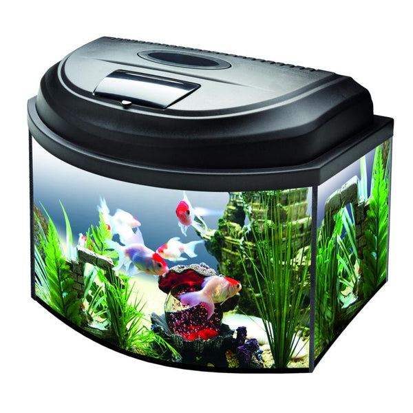 Komplekte rasite viską, ko reikia norint auginti žuvytes: akvariumą, patogiai atsidarantį dangtį su 6W LED šviestuvu, filtrą FAN1, šildytuvą 25W, dirbtinį augalą, pašarą, sietelį, termometrą.