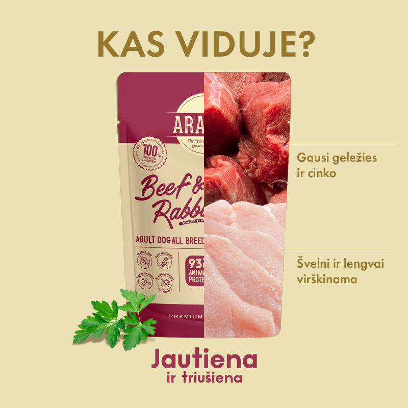 Araton Visų veislių suaugusių šunų šlapias pašaras su jautiena ir triušiena