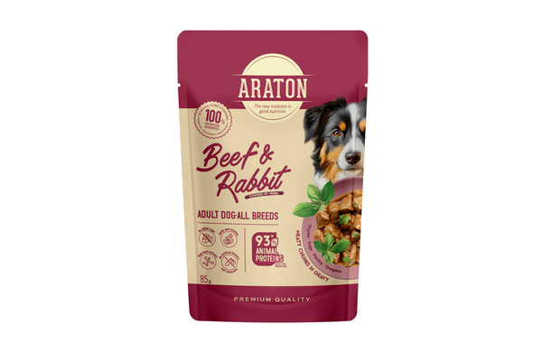 ARATON visavertis šlapias maistas su ėriena ir triušiena – subalansuotas pasirinkimas augančiam šuniui. Kai šuniukas auga, svarbu ne tik sotumas – kiekvienas kąsnis turi užtikrinti sklandų virškinimą, sveiką augimą ir tvirtą imunitetą.