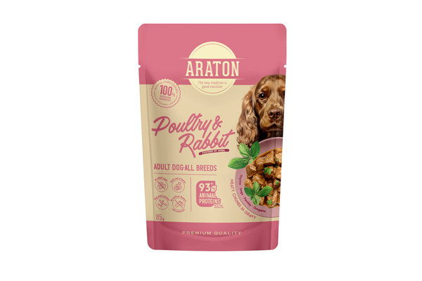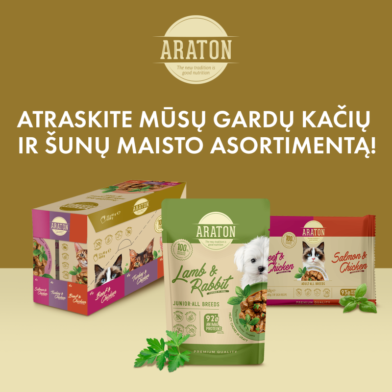 ARATON receptūros kuriamos kartu su gyvūnų mitybos ekspertais, remiantis realiais augintinių poreikiais. Tinka kasdieniam šėrimui visų veislių šunims – kaip pilnavertė mityba arba kaip papildas prie sauso maisto. Pagaminta Lietuvoje – laikantis aukštų kokybės standartų. ARATON – KIKA šeimos produktas, kuriuo pasitiki šimtai tūkstančių šeimininkų visame pasaulyje. Kad kasdienis šėrimas būtų ne tik malonus, bet ir naudingas.