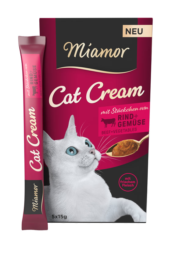 „Miamor Cat Cream“ – specialiai suaugusioms katėms sukurti skysti skanėstai su jautiena ir daržovėmis.