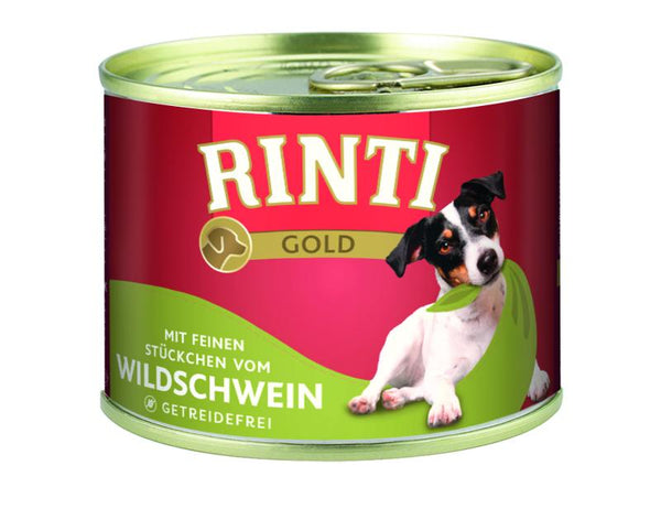 "RINTI GOLD" - aukštos kokybės konservuotas pašaras su šerniena, skirtas suaugusiems šunims.