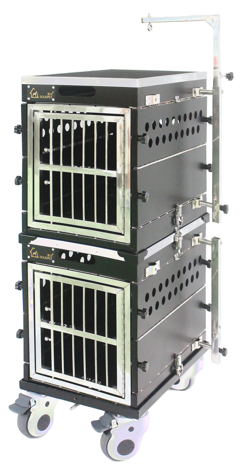 Šis narvas-gyvūnų vežimėlis pagamintas iš aukštos kokybės nerūdijančiojo plieno, kuris užtikrina atsparumą korozijai, drėgmei bei įbrėžimams. Narvas yra sulankstomas – paprastai ir greitai surenkamas bei susilanksto, taupant vietą sandėliavimui ar transportavimui. Durelės su slankiojančiu užraktu suteikia saugų uždarymą.
