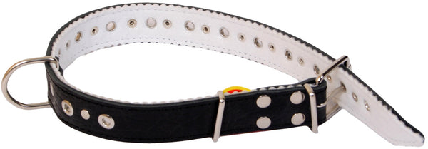 Šuns antkaklis su veltiniu ir kniedėmis, reguliuojamo ilgio.
