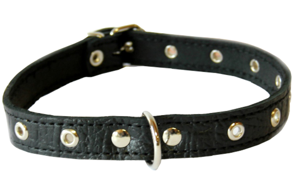 Dirbtinės odos elegantiškas antkaklis papuoš Jūsų mylimą augintinį. Antkaklis tvirtas, sagtelės, žiedeliai ir papuošimai pagaminti iš kokybiško metalo. Dėl skylučių antkaklio ilgį galima laisvai reguliuoti. Metalinės detalės gaminiui suteikia puošnumo.