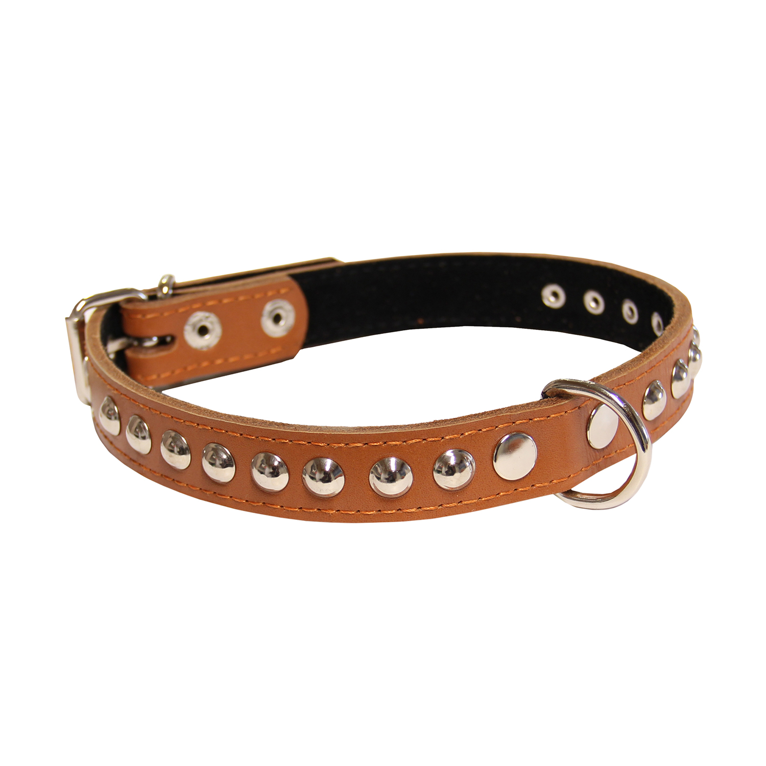 Dirbtinės odos šuns antkaklis su metaliniais papuošimais.
