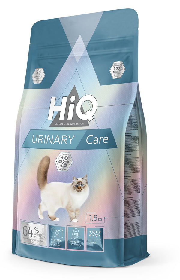 „HiQ Urinary Care“ – Super Premium (aukščiausios) kokybės dietinis pašaras suaugusioms, 1 metų ir vyresnėms katėms. Jis mažina struvitinių akmenų atsinaujinimą.