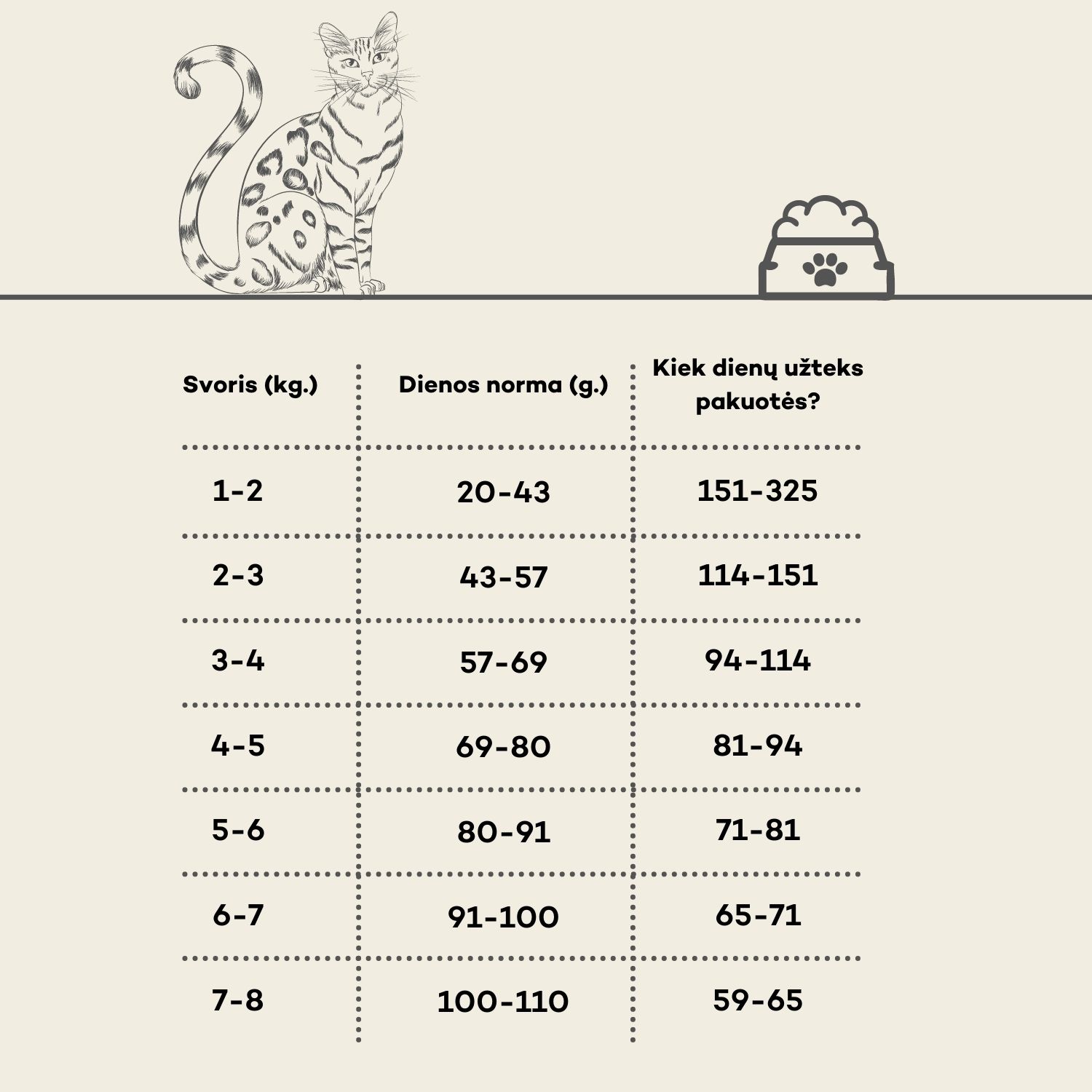 Su paukštiena – lengviausiai virškinamais gyvūninės kilmės baltymais tinkamam raumenų tonusui palaikyti. Gyvūninės kilmės baltymai augintinio organizmą aprūpina subalansuotu aminorūgščių kiekiu sveikam ir ilgesniam gyvenimui.