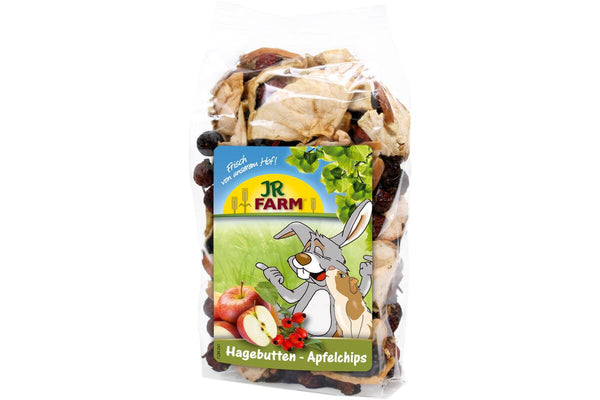 "JR Farm Rose Hip Apple Chips" - tai aukštos kokybės pašaro papildas, kurį sudaro traškios erškėtuogės ir saulėje džiovintos obuolių skiltelės. Vitaminų turtingas mišinys skirtas įvairių rūšių graužikams ir nykštukiniams triušiams, išskyrus degu, nykštukinius žiurkėnus ir smiltpeles. Pagardinkite savo augintinio pašarą šiuo natūraliu, išskirtinio skonio pašaro papildu.