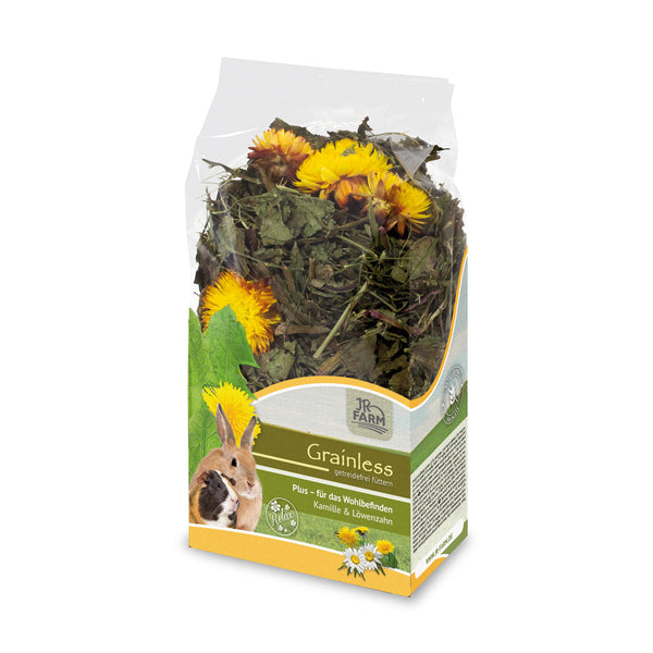 "JR Farm Grainless Camomile - Dandelion - Relax" - tai aukštos kokybės visavertis nykštukinių triušių ir kitų graužikų pašaro papildas su ramunėlėmis ir kiaulpienėmis. Visavertis subalansuotas pašaro papildas - puikus pasirinkimas norint papildyti kasdienę augintinio mitybą.