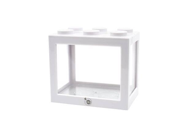 Plastikinis LEGO kaladėlės formos akvariumas su LED apšvietimu – puikus pasirinkimas norintiems unikalaus dizaino, nedidelio akvariumo, pagyvinančio bet kokį interjerą.