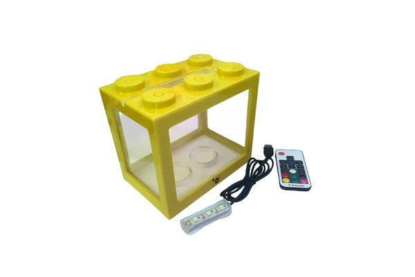 Plastikinis LEGO kaladėlės formos akvariumas su LED apšvietimu – puikus pasirinkimas norintiems unikalaus dizaino, nedidelio akvariumo, pagyvinančio bet kokį interjerą.