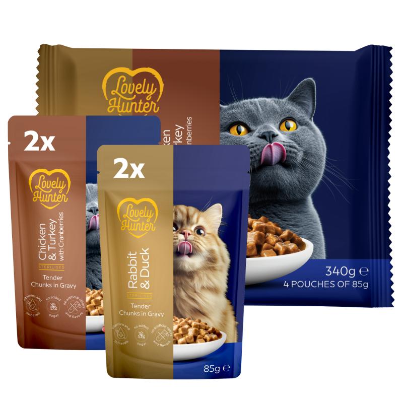 Lovely Hunter Visų veislių suaugusių sterilizuotų kačių šlapių pašarų rinkinys