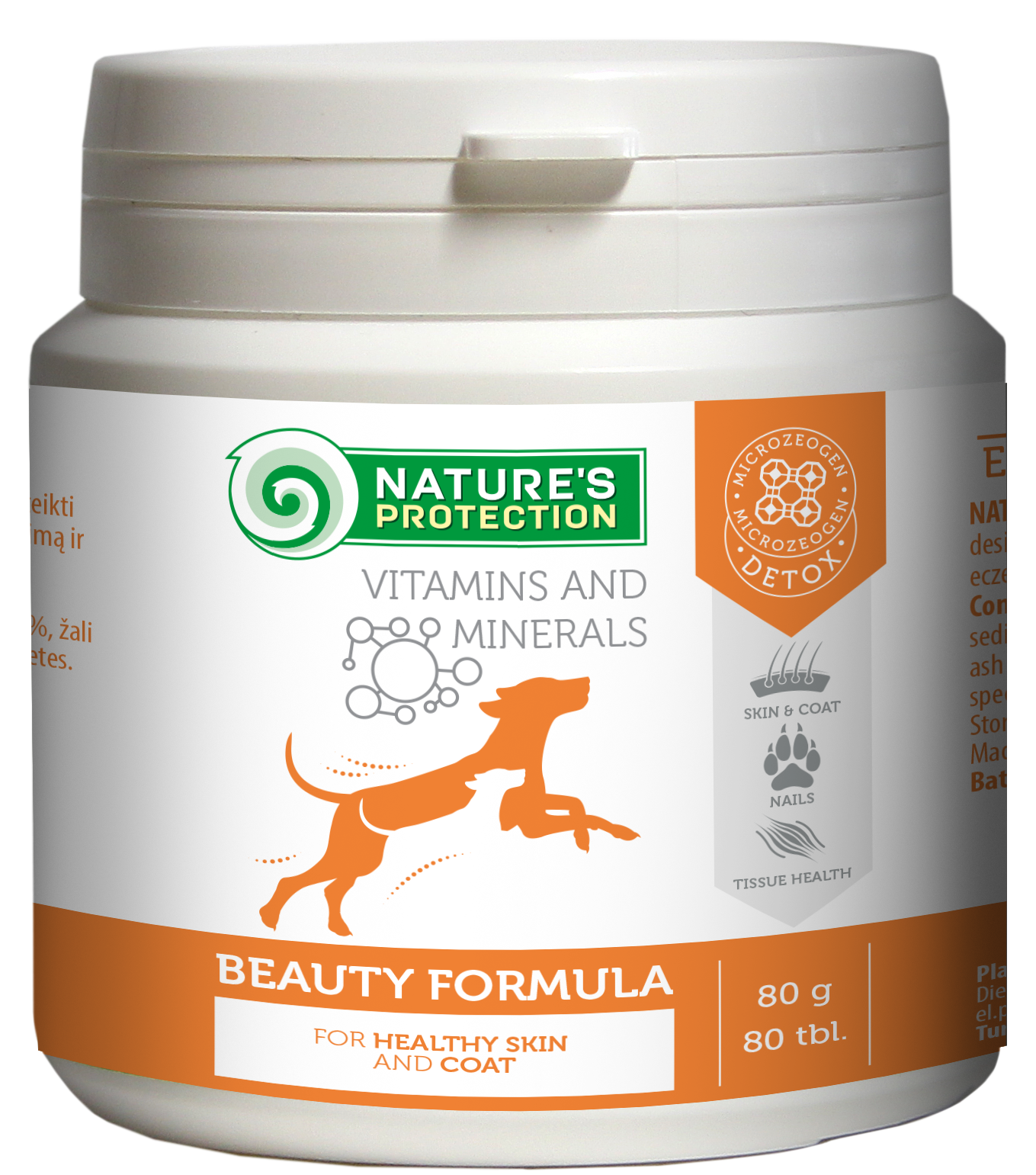 "Nature"s Protection Skin & Coat Formula" - pašaro papildas tabletėmis, specialiai sukurtas suaugusiems šunims siekiant puoselėti kailį ir odą. Dėl nepakankamo biotino kiekio augintinio kailis gali pradėti slinkti, išsausėti ir veltis, oda gali tapti jautri, o nagai - susilpnėti ir pradėti lūžinėti. Norint išvengti šių problemų, reikėtų kasdien papildyti šuns mitybos racioną pašaro papildu su biotinu.