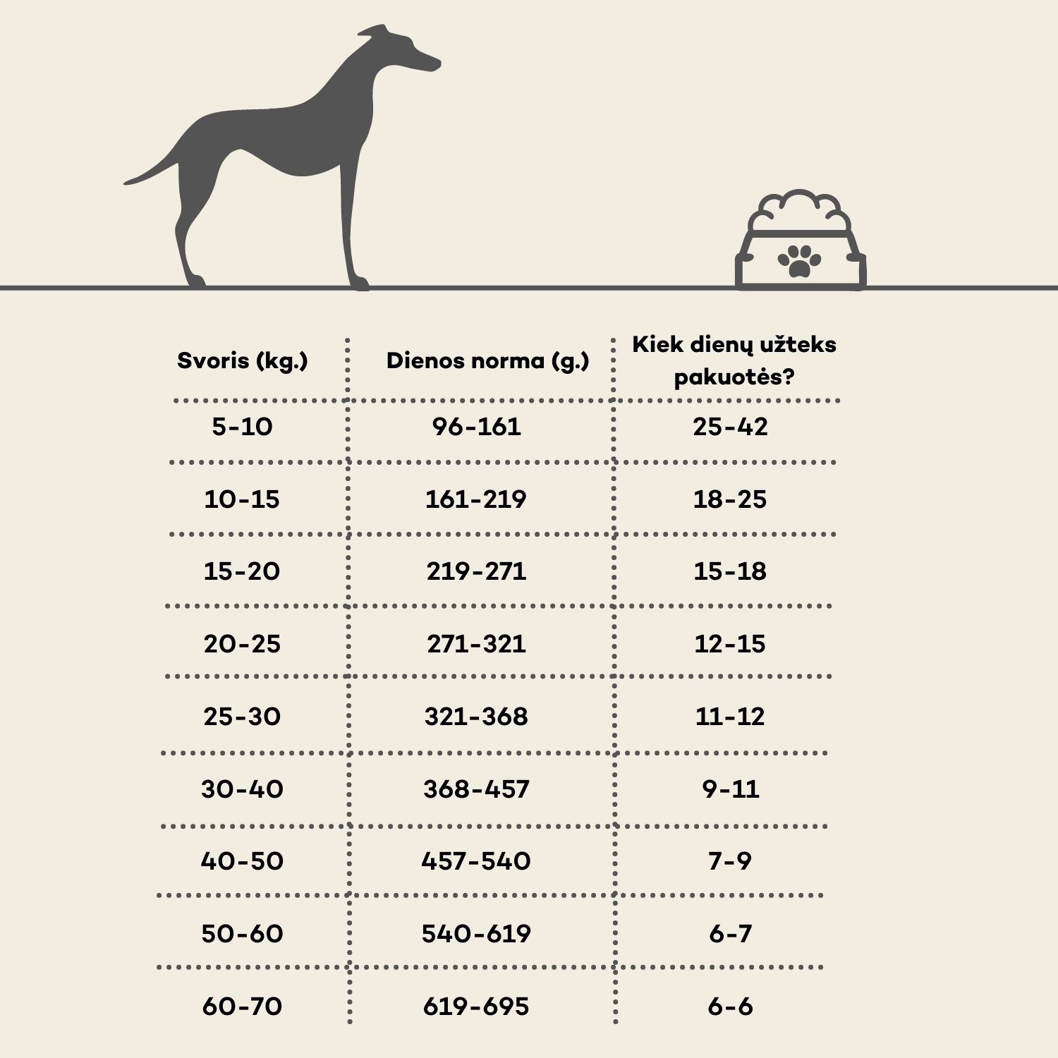 Jūsų šuns suėdamo ėdalo kiekis gali priklausyti ir nuo jo temperamento bei aktyvumo. šalia visuomet turi būti šviežio švaraus vandens.