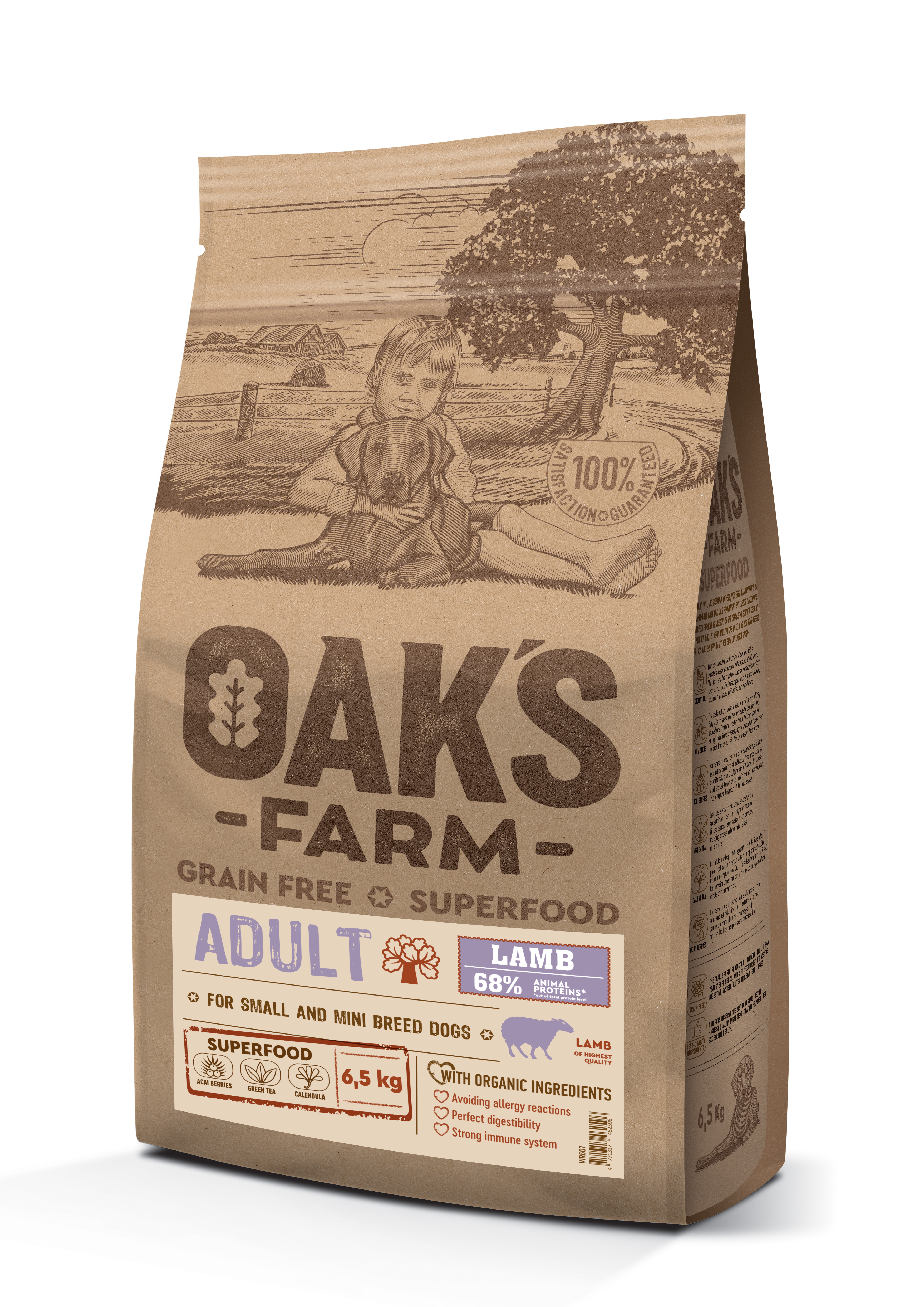 Oak's Farm Suaugusių mažų ir labai mažų veislių šunų sausas begrūdis pašaras su ėriena