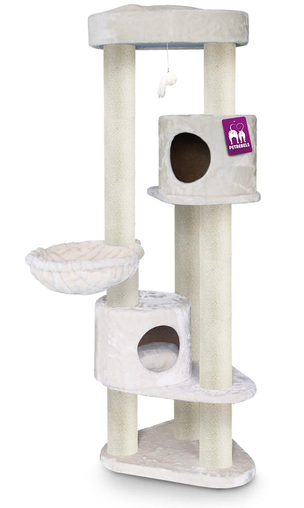ši kačių draskyklė yra daugiafunkcinė: jos sienos tinkamos draskymui, prie jos pritvirtintas žaisliukas - žaidimams, o įvairiame aukštyje pritvirtintos pakylos, landos ir hamakas - poilsiui, aplinkos stebėjimui ir miegui.