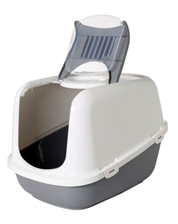 Uždaras didelis plastikinis tualetas-namas didelių veislių katėms.