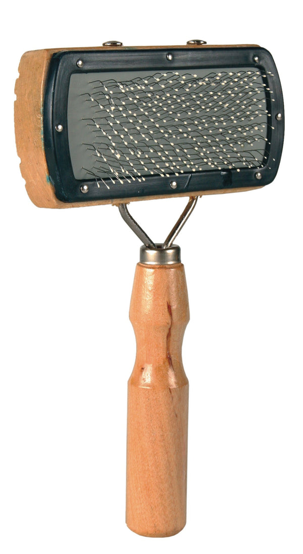 Medinis ilgaplaukių šunų šepetys su metaliniais dantukais. Gerai iššukuoja tankią pavilnę, vilną ir šiurkštesnį kailį.
