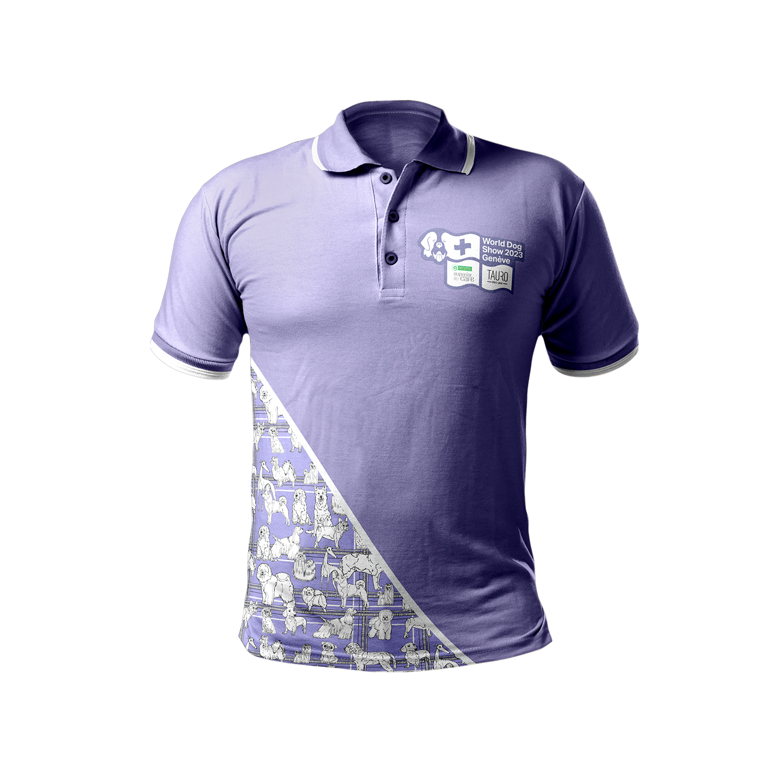 World Dog Show Polo marškinėliai trumpomis rankovėmis, violetinės sp., su qr kodu
